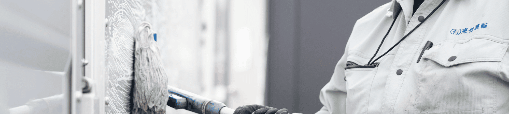 東伸では、大型トラック・ダンプ・ミキサー車など商用車両を中心に、専用洗車設備を用いたプロの洗車サービスを提供しています。